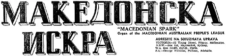 "Makedonska Iskra" was printed monthly, initially in Perth. It moved to Sydney in 1948 and eventually to Melbourne from 1953 to 1957. The paper achieve considerable success in Australia and the rest of the world. Copies of Makedonska Iskra were posted to America, Canada and to the Socialist Republic of Macedonia.[2] The newspaper is now a record of key historical events that shaped the Macedonian nation and of the many people and events within the Macedonian community in Australia.