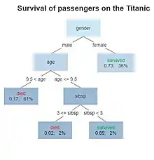 Decision tree learning uses a decision tree as a predictive model to go from observations about an item (represented in the branches) to conclusions about the item's target value (represented in the leaves). It is one of the predictive modeling approaches used in statistics, data mining, and machine learning. Tree models where the target variable can take a discrete set of values are called classification trees; in these tree structures, leaves represent class labels, and branches represent conjunctions of features that lead to those class labels. Decision trees where the target variable can take continuous values (typically real numbers) are called regression trees. In decision analysis, a decision tree can be used to visually and explicitly represent decisions and decision making. In data mining, a decision tree describes data, but the resulting classification tree can be an input for decision-making.