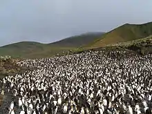 Royal penguins and Macquarie shags are endemic breeders, while king penguins, southern rockhopper penguins and gentoo penguins also breed here in large numbers. The island has been identified by BirdLife International as an Important Bird Area because it supports about 3.5 million breeding seabirds of 13 species.[28]