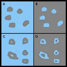 Creaming is the accumulation of drops in the dispersed phase at the top of the container.[2] This occurs as a result of buoyancy forces. The density of the dispersed and continuous phases, as well as the viscosity of the continuous phase, greatly affect the creaming process. If the dispersed phase liquid is less dense than the continuous phase liquid, creaming is more likely to occur. Also, there is a greater chance of creaming at lower viscosities of the continuous phase liquid. Once all of the dispersed drops are in close proximity to each other, it is easier for them to coalesce.