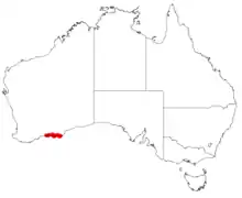 The species is found in coastal heath on sand in which jarrah (Eucalyptus marginata) is absent, restricted in range to the eastern Recherche section of the Esperance Plains bioregion.[2] The seeds of djeeri formed an important part of the human diet, the earliest record of this is the preparation of seed at a cave in Cape Le Grand national park dated at thirteen thousand years old. Investigation of the site revealed a mordak, the instrument used to detoxify the sarcotesta that surrounds the seeds. This seeds were placed in a depression lined with leaf bases of the plant paalaq, Xanthorrhoea platyphylla, another crucial resource in the local culture. The sarcotesta and seeds remains buried for several weeks to become detoxified and consumable, the food product, known as querning, still contains toxins at the centre of the seeds.