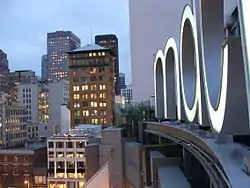 Macy's West was established in San Francisco, California in 1866 as O'Connor, Moffat, Kean Co. at Second & Market Streets, eventually moving into several buildings on south Post Street, between Grant Avenue and Kearny Street, where it rebuilt after the 1906 San Francisco earthquake and reopened in March 1909.[1] In 1928, the company, by then known as O'Connor, Moffat & Co., commissioned a new location at 101 Stockton Street. R.H. Macy & Company, New York, New York acquired O'Connor Moffat in 1945[2] and on October 16, 1947 renamed the store Macy's San Francisco.[3] Macy's followed up with a major expansion of the store at 170 O'Farrell Street in 1948, using the original architect of the 1928 building, Louis Parson Hobart.[4]