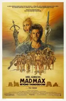 Mad Max Beyond Thunderdome is a 1985 Australian post-apocalyptic dystopian action film directed by George Miller and George Ogilvie and written by Miller and Terry Hayes.[4] It stars Mel Gibson and Tina Turner in a story of a lone roving warrior who is exiled into the desert, and there encounters an isolated child cargo cult, centred on a crashed Boeing 747 and its deceased captain.