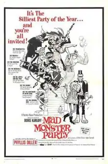 Mad Monster Party? is a 1967 American stop-motion animated musical comedy film produced by Rankin/Bass Productions for Embassy Pictures.[4] The film stars the voices of Boris Karloff, Allen Swift, Gale Garnett, and Phyllis Diller.[5] It tells the story of a mad scientist who achieves the secret of total destruction as he summons all the monsters to his island home to show it off while planning to retire as the head of the "Worldwide Organization of Monsters".