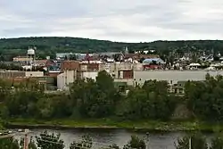 Madawaska is a rural town whose economy centers on the Saint John River paper industry. The river historically provided water power for the mills and was the route of log drives bringing pulpwood from upstream forests. The river still provides the water supply for paper manufacture, but environmental concerns encourage pulpwood delivery by highway and rail.[6] Canadian corporation Twin Rivers (originally Fraser Papers) has a large facility located in Madawaska which processes the pulp produced by the mill's other plant in Edmundston. The pulp is shipped across the border through a mile-long high pressure pipeline running between both facilities, and is made into paper in Madawaska. The Madawaska mill specializes in fine-grade papers. The town's economy is highly dependent upon cross-border trade, to the extent that Madawaska and its larger sister city of Edmundston are considered by residents under many aspects, a single economic entity.[7]
