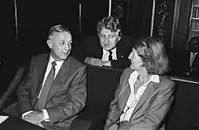 ![]() Madeleen Leyten-de Wijkerslooth de Weerdesteyn (right) in 1983, with Piet Bukman (center) and Piet Steenkamp (left) | |