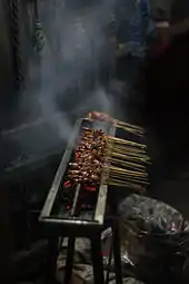 For the Madurese people, their traditional cuisine is characterized by a fairly large use of meat; of which primarily prepare miniature skewers called satay accompanied with special sweet marinade and thick sharp sauce, has enjoyed a wide popularity in many parts of Indonesia. In addition, traditional Madurese culinary are characterized by the active use of corn and, in general, greater salinity of dishes compared to other regional cuisines of the country.[25]