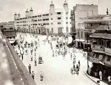 Madina building is the oldest commercial suburbs of Hyderabad, India. It is very close to the historic Charminar.[4] This is a major traditional retail street in Hyderabad. Madina building is connected with the neighboring commercial areas like Pathargatti, Shehran, Charminar and Laad Bazar which houses shops specially for women and Brides, and daily around millions of business deals are done in this regions.[5] Most of the bridal dress are Exported to neighboring states, United States, Europe, Middle East, Pakistan, Bangladesh and many other countries. During the Holy Month of Ramzan you could hardly find the space to stand otherwise the area is completely crowded and locked with the Retail shoppers during Day and Night.[6]