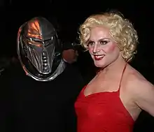 Madonna herself, has used the image of others historical figures and modern celebrities, with a scholar describing her as a "replicant" in the sense she is an "image of images, mirror of mirrors", who "re-multiplies and re-changes and dissolves itself".[96] Most notably, she personified Marilyn Monroe with assistant professor S. Paige Baty, and historian Robert D. Richardson concluding that she reproduces herself as Marilyn in outfits, hairstyles, and mannerisms.[97] However, Madonna has been identified by some of these observers as the "Queen-of-Seeming-as-Being herself".[98][97] In this regard, Italian professor Massimiliano Stramaglia from University of Macerata, noticed other scholars commentary about it, as some had reported that she "never stops looking like other stars, including Monroe".[96] While she largely benefit of Monroe's image, others noted a Madonna's impact for her image in her generation, with scholars Robert Sternberg and Aleksandra Kostić saying, "Madonna's TV-pictured soft-tousled blond hair popularized the sexy, Marilyn Monroe look of the 1950s".[99] "The woman who will not die", recalled Gloria Steinem, echoing Madonna's representations of Monroe, and saying she further puts her as "an ever-present fixture in everyday American culture".[98] On the other hand, during the Atlanta gig of her The MDNA Tour, Madonna told her audience: "Imitation is the highest form of flattery".[100]