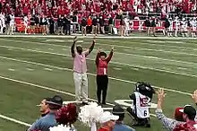 ![]() Hill waves while being honored as an SEC Football Legend on the field at Razorback Stadium[1] | |||||||||