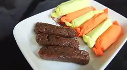 Madumongso or madumangsa is a Javanese snack made from black sticky rice as a basic ingredient. The taste is mixed with sweet because the black rice is previously processed before it becomes tapai (through the fermentation process) and cooked become dodol. Madumongso originates from Ponorogo, East Java.[1]