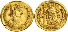 Solidus of Marcus Maecilius Avitus, emperor from AD 455 to 456.