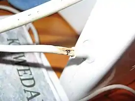 In 2008, Apple posted an official response acknowledging problems with MagSafe adapters, which include incomplete circuit connection and adapter's white insulation separating from the magnetic end of the MagSafe connector.[24] Following the release of a Knowledge Base article, a class-action lawsuit was filed on May 1, 2009, in the US District Court for the Northern District of California's San Jose office, alleging that the MagSafe power adapter is prone to frayed wires and overheating, and as such represents a fire hazard.[25]
