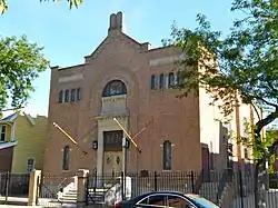 Congregation Magen David Synagogue is a historic Sephardic Syrian-Jewish synagogue located in the Bensonhurst neighborhood of Brooklyn, New York. Erected in 1920–1921, the synagogue was at its height of popularity during the 1940s, 1950s, and early 1960s. The synagogue is still in continual use for daily and Shabbat prayers. It is a two-story, Romanesque Revival style brick building on a raised basement. It features a variety of brick designs and stone details, round arched windows, and a red terra cotta clad tile roof.[2]: 3, 11