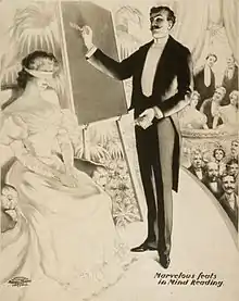 Bizarre magic is a branch of stage magic that creates eerie effects through its use of narratives and esoteric imagery.[26] The experience may be more akin to small, intimate theater or to a conventional magic show.[27] Bizarre magic often uses horror, supernatural, and science fiction imagery in addition to the standard commercial magic approaches of comedy and wonder.[28]