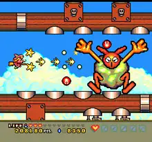 Famitsu's four reviewers noted that it incorporated elements from R-Type, Super Mario World and Fantasy Zone.[30] El Nionio and Rocket of Consoles + criticized its presentation but commended the detailed visuals, fast parallax scrolling, sound design, playability and longevity.[28] Génération 4's Philippe Querleux highly praised the audiovisual presentation, animations and playability.[33] Likewise, Joypad's Jean-Marc Demoly and Joystick's Sébastien Hamon commended the animated visuals, sound and controls.[34][35]