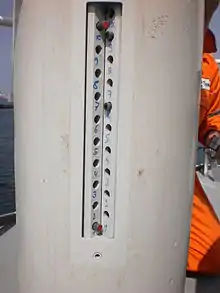 The deviation errors caused by magnetism in the ship's structure are minimised by precisely positioning small magnets and iron compensators close to the compass. To compensate for the induced magnetization, two magnetically soft iron spheres are placed on side arms. However, because the magnetic "signature" of every ship changes slowly with location, and with time, it is necessary to adjust the compensating magnets, periodically, to keep the deviation errors to a practical minimum.[4] Magnetic compass adjustment and correction is one of the subjects in the examination curriculum for a shipmaster's certificate of competency.