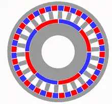 Magnetic gear systems typically use permanent magnets. They may also use electromagnets for specialized cases including changeable gear ratio. Magnetic gear coupling can be configured in several ways.