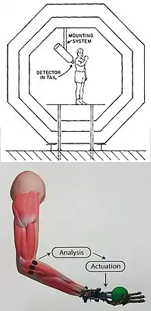 Magnetomyography (MMG) is a technique for mapping muscle activity by recording magnetic fields produced by electrical currents occurring naturally in the muscles, using arrays of SQUIDs (superconducting quantum interference devices).[1] It has a better capability than electromyography for detecting slow or direct currents. The magnitude of the MMG signal is in the scale of pico (10−12) to femto (10−15) Tesla (T). Miniaturizing MMG offers a prospect to modernize the bulky SQUID to wearable miniaturized magnetic sensors.[2]