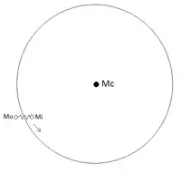 where is known as the epicyclic frequency. In our solar system, for example, deviations from a sun-centered circular orbit that are familiar ellipses when viewed by an external viewer at rest, appear instead as small radial and azimuthal oscillations of the orbiting element when viewed by an observer moving with the undisturbed circular motion. These oscillations trace out a small retrograde ellipse (i.e. rotating in the opposite sense of the large circular orbit), centered on the undisturbed orbital location of the mass element.