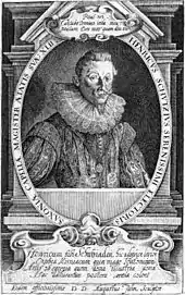 Schütz composed Meine Seele erhebt den Herren, SWV 494, in 1669 for two four-part choirs, instruments and basso continuo.[2] It was published in the composer's last collection Des Königs und Propheten Davids 119. Psalm in 11 Stücken (Opus ultimum) (The 119th psalm by king and prophet David in 11 pieces (last work)).[9] This work, consisting of an elaborate setting in eleven movements of Psalm 119 combined with an earlier setting of Psalm 100 and the Magnificat, was intended by Schütz to be his final work and is therefore also called Schwanengesang (Swan Song).[10][11][12] The original title reads "Königs und Propheten Davids Hundert und Neunzehender Psalm in Eilf Stükken nebenst dem Anhange des 100. Psalms: Jauchzet dem Herrn! und Eines deutschen Magnificats: Meine Seele erhöbt den Herrn". (King and prophet David's 119th psalm in eleven pieces with the appendix of the 100th psalm "Rejoice in the Lord!" and a German Magnificat).[3]