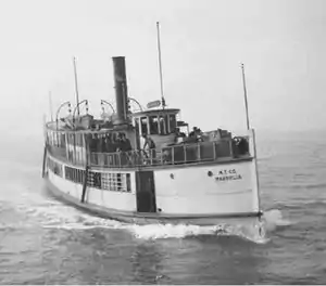 Magnolia was built at Tacoma in 1907 for the Tacoma and Burton Navigation Company, which intended her to replace Burton on the company's routes around Tacoma and Vashon Island. The company's chief rival was the Vashon Navigation Company, which ran the steamer Vashon, under Captain Chauncey "Chance" Wyman. Once launched, Magnolia, under Capt. Fred Sutter, raced Vashon daily between landings to be the first boat to pick up the business. By 1909, the rate wars had died down, and Magnolia and Vashon were running on different schedules.[1]