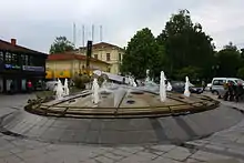 Magnolia Square (Macedonian: Плоштад Магнолија, romanized: Ploštad Magnolija) is a public space and a town square of the City of Bitola, located near the Clock Tower. Around the square are old houses from the Macedonian and Ottoman architecture that are purchased from various companies, firms and coffee bars. Bitola, which was a major cultural center[1] in the Ottoman Empire has very interesting buildings from the Turks from which many on Main Street and Magnolia Square. Also there is an art gallery "Magaza" and the newly built "Glass Building". Bitola in cooperation with the Government of Macedonia made the monument The Founder of Heraclea Statue[2] that is 8.5m high and around it a fountain with the Vergina Sun on it, and benches for sitting and resting.