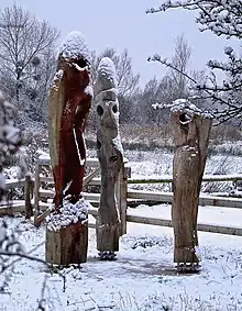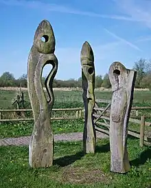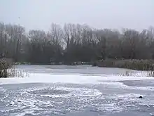 Magor Marsh includes breeding grounds for common redshank and common snipe. Reed warbler, grasshopper warbler, cetti's warbler, reed bunting and chiffchaff also live in the reeds. In the pond are water rail, coot, grey heron, little grebe, moorhen, little egret, Eurasian teal, shoveler and kingfisher.[2] In the reen the most common species are grass snake, great silver beetle, smooth newt and otter.[2] The wet woodland typical has such species as great spotted woodpecker and musk beetle. Cuckoo can be heard in the summer. Osier, crack willow and sallow are typical species in the wet woodland.[2] In the meadows the common butterflies are orange tip and meadow brown.[2][4][5][6] The reens provide a habitat for azure damselfly. In 2019 leaf mines and a larva of the marbled marble (Celypha woodiana) was found on mistletoe (Viscum album), this Biodiversity Action Plan (UK BAP) species has a limited distribution in Britain and the 2019 record was the first confirmed for Wales.[7]