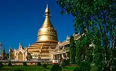 The Maha Wizaya Pagoda (Burmese: မဟာဝိဇယစေတီ; Pali: Māhavijayacetiya) is a pagoda located on Shwedagon Pagoda Road in Dagon Township, Yangon, Myanmar. The pagoda, built in 1980, is located immediately south of the Shwedagon Pagoda on Dhammarakhita Hill.[1] The enshrined relics were contributed by the King of Nepal, while the pagoda's hti (umbrella) was consecrated by Ne Win, the country's former leader.[2] The construction of this particular pagoda is believed by some scholars to have been a form of merit-making on the part of Ne Win.[3]