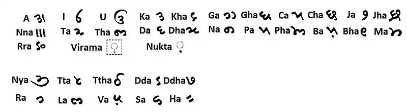 | 𑅝 | ña | [ɲ] |