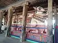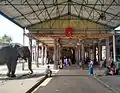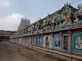 The temple is located in Tiruvidaimaruthur, a village in the South Indian state of Tamil Nadu, 8 km (5.0 mi) away from Kumbakonam on the Kumbakonam - Mayiladuthurai highway.[16] The temple has a five-tiered Rajagopuram and three precincts, each enclosed inside huge walls and having gateway towers for each of them.[7] The temple is rectangular in plan with east–west orientation and has four entrances in each of the four directions. Mahalingam, literally meaning big lingam, is the presiding deity and is considered the centre of all consort deities of Tamil Nadu.[8] There are five temple tanks inside the temple, namely Karunyamirdha Theertham, Soma Theertham, Kanaga Theertham, Kalyana Theertham and Iravatha Theertham.[8] There are 27 other water bodies that are associated with the temple. There is a separate shrine for Mookambiga and it is built in north Indian style.[8] The shrine of Mookambiga is where Parvathi is believed to have performed her penance.[7] There are stone images of Pattinathar and Bhadragiriyar in the eastern and western gateways of the temple respectively.[8] The central shrine of the temple is that of Mahalingaswamy facing East. The shrine of Ambal faces the east and is situated close to the Mookambigai Amman shrine.[7] The temple was widely expanded during the Nayak period in the 16th century with the development of twin Mahalinga and Devi shrines.[17] The shrines of Muruga and Nataraja are enshrined in the spaces between the pier.[17] There are other shrines for Padithurai Vinayagar and Agora Veerabadrar.[7]