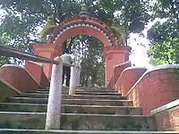 Mahamaya Dham or Mahamaya (supreme illusion) Temple of Bogribari, about 30 km east from Dhubri town and 10 km west from Bilasipara town, is regarded as a greatest Shakti Peethas[1] for Hindu pilgrims in Lower Assam, India. It is located under Parbatjhora sub-division of district Kokrajhar. In terms of attractions, this temple is the second to Kamakhya Temple of Guwahati to the pilgrims and tourists.[2] It is believed that the famous goddess Mahamaya was traditionally worshipped by the local people of Parvatjowar like Kacharies, Koches and Naths. It was also the presiding deity of the Zamindar (landlord) of Parvatjowar. Latter the goddess received wide acceptance and these days, all Hindus of Lower Assam worship mother Mahamaya.