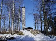The tower on the top of the Mahlberg was built as a reinforced concrete observation tower. On the tower is a plaque with an inscription that is translated as follows: