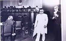 Disillusioned with the Muslim League government Ali left the party in 1952, and on 19 January 1953 founded a secular political party, the Ganatantri Dal, with Haji Mohammad Danesh, a Kisan leader.[4] The Ganatantri Dal was the first to open its doors to non-Muslims on an equal footing and demanded a secular constitution. The party manifesto included the demand for the abolition of feudalism without any compensation, the release of political prisoners, secession from the Commonwealth, nationalisation of jute trade, equal rights for women and minorities in social, political and economic spheres, and abolition of visa system between Pakistan and India.[5]