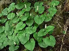 Maianthemum dilatatum (snakeberry, two-leaved Solomon's seal or false lily of the valley) is a common rhizomatous perennial flowering plant that is native to western North America from northern California to the Aleutian islands, and Asia across the Kamchatka Peninsula, Japan, and Korea. It grows in coastal temperate rainforests, and is often the dominant groundcover plant in Sitka Spruce forests.