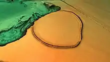 There is an original entrance gap on the south-east, and other later gaps. There was excavation by Worthington G. Smith, and the owner of the site, in 1913 at the south-east entrance. They found features later interpreted as the west wall of a timber gateway. Across the entrance was found a large pit with the disarticulated remains of about 50 persons, thought to be a ritual mass reburial rather than an indication of warfare.[1]