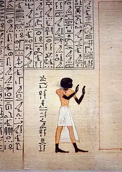 Maiherperi's copy of the Book of the Dead, which, in the eyes of O'Connor and Cline is "[c]ertainly the most famous and arguably the most beautiful" Book of the Dead[5] depicts him with literally "blackish" skin, leading scholars to believe he was an Egyptian of Nubian descent.[6]