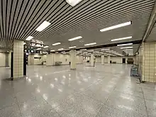 This station became wheelchair accessible in 2004.[3] One elevator near the southeast corner of the station building provides access from street level to the concourse level of the eastbound subway platform; a second elevator in the northwest corner provides a connection between the concourse level and the westbound subway platform.[4] To facilitate accessibility, automatic sliding doors were added at the street entrance and on the north side of the station building to access the bus bays, along with an accessible fare gate and improved signage.[5] A space is reserved for Wheel-Trans vehicles.