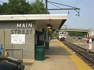 Main Street station is a SEPTA Regional Rail station in Norristown, Pennsylvania, United States. It serves the Manayunk/Norristown Line. It is one of the two stations on the short electrified branch to Elm Street in Norristown. The station has 76 parking spaces. It is located at Main and Markley Streets. In FY 2013, Main Street station had a weekday average of 189 boardings and 181 alightings.[1]