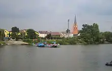 The Maintal–Dörnigheim Ferry, also known as the Mühlheim am Main to Dörnigheim Ferry, was a vehicular cable ferry across the Main river in Hesse, Germany. The ferry crossed between the Dörnigheim district of the town of Maintal, on the right bank of the river, and Mühlheim am Main opposite. On June 25, 2020, the ferry was permanently retired. [1]