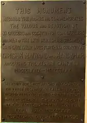 This monument records the names and commemorates the valour and devotion of XI [11] officers and CCCXVIII [318] non-commissioned officers and men of the LXVI [66th] Berkshire Regiment who gave their lives for their country at Girishk Maiwand and Kandahar and during the Afghan Campaign MDCCCLXXIX [1879] โ MDCCCLXXX [1880].