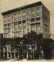 The Majestic Hotel was built in 1898 and located at 195 Peachtree Street NW in Atlanta, between Ellis St. and Cain St. (now Andrew Young Int'l. Blvd.). It was a major addition to the city's hotel capacity at its completion in the 1890s. It cost between $80,000 and $100,000 to build,[1] and was the first brick and steel fireproof construction in the city.[2] A 1902 guidebook describes the Majestic as one of three chief first-class hotels in the city, together with the Kimball House and the Hotel Aragon.[1] In 1927 the hotel was razed to make way for a two-story commercial structure.[3] The site is part of the location of today's 191 Peachtree Tower.
