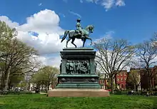 The site chosen for the monument was the center of Iowa Circle, a park in an upscale neighborhood in the city's northwest quadrant.[7] The park was completely redesigned in 1891 to make room for the monument.[8] By the time it was dedicated in 1901, nearby Dupont Circle was lined with mansions and had become more popular with the city's wealthy residents while Iowa Circle, surrounded by stately row houses, had become a middle-class neighborhood.[7]