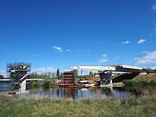 The end of construction for the Majura Parkway project was formally announced on Friday 22 April 2016,[17] coinciding with the naming of the Malcolm Fraser Bridge, the most prominent feature of the project, which runs over the Molonglo River. The bridge's name was unveiled by Tamara 'Tamie' Fraser, wife of the former Prime Minister.[18] The off-ramp to Meddhung Road linking to the Majura shopping precinct was opened later on 22 December 2017.[19]