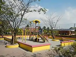 Amenities in the park include a multi-purpose stage, an area for aerobics sessions, and a 1,500-square-metre (16,000 sq ft) children's playground that includes an air walker, self-weighted rower and dome climber. It also has a badminton and tennis court, comfort rooms, stone benches and accessibility features for persons with disability.[1][4] The Malabon City Main Library, one of only two public libraries in the city, is situated just across the street from the park. It was built in 1995 to replace the old facility near the Malabon City Hall in San Agustin.[5] In 2011, the New Malabon City Jail was built by the national government through its Bureau of Jail Management and Penology at the site of the former regional trial court which moved to higher ground in Goldenvale Subdivision, Tinajeros in 2010 after the destruction caused by Typhoon Ketsana (Ondoy).[6]
