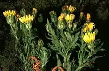 Malacothrix squalida is a rare species of flowering plant in the family Asteraceae known by the common name Santa Cruz desertdandelion. It is endemic to Santa Cruz and Anacapa Islands, two of the eight Channel Islands of California, where it grows on rocky seaside bluffs and cliffs. The plant is very limited in distribution and today exists only in degraded habitat on these two small islands. It was last collected from Santa Cruz Island in 1968, and two populations were noted on Anacapa Island in 1998; in drought years there may be no plants at all.[1][2] It became a federally listed endangered species in 1997. This is an annual herb growing a hairless, waxy stem 20 to 30 centimeters in maximum height. The leaves are sharply lobed. The inflorescence is an array of flower heads lined with oval-shaped phyllaries. The ray florets are 1 to 2 centimeters and light yellow in color.
