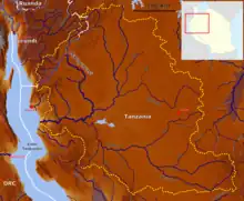 The Malagarasi River is a river in western Tanzania, flowing through Kigoma Region, although one of its tributaries comes from southeastern Burundi. The river also forms the western border of Tabora Region, the southern border of Kagera Region and the southwestern border of Geita Region. It is the second-longest river in Tanzania behind the Rufiji—Great Ruaha, and has the largest watershed of any river flowing into Lake Tanganyika.[1] The Malagarasi-Muyovozi Wetlands are a designated a Ramsar site. Local tribes have nicknamed the Malagarasi as "the river of bad spirits".