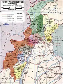 The Malakand Agency (Pashto: ملاکنډ ایجنسيۍ) was one of the agencies in the North West Frontier Province of British India and later of Pakistan until 2010.[1] It included the princely states of Chitral, Dir and Swat, and an area around the Malakand Pass known as the Malakand Protected Area.[2] The largest city in the area was Mingora, while the three state capitals were Chitral, Dir, and Saidu Sharif. In 1970, following the abolition of the princely states, the agency became the Malakand Division, which was divided into districts, one of which was the Malakand Protected Area, known as Malakand District. In 2000 the Malakand Division was abolished. Despite the constitutional changes since 1970, the expression Malakand Agency is still used, sometimes of the entire area of the former Agency, but more often of Malakand District.