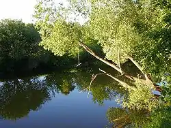 The Malaya Kokshaga (Mari: Изи Какшан, Izi Kakšan; Russian: Малая Кокша́га, literally Little Kokshaga) is a river in Mari El, a left tributary of the Volga. It is 194 kilometres (121 mi) long, and has a drainage basin of 5,160 square kilometres (1,990 sq mi).[1] It originates in the northern part of the republic, passes through its capital, Yoshkar-Ola, and flows to the Kuybyshev Reservoir, Volga near Kokshaysk. The Malaya Kokshaga is mainly fed by snow. From November till April, the river is frozen. The riverbed is meandering; there are many former river beds in the valley. The main tributary is the Maly Kundysh.