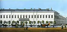 The Shuvalov Mansion at 1 Malaya Sadovaya/25 Italyanskaya was designed by the architect Savva Chevakinsky for Ivan Shuvalov and constructed in 1749–1756. From 1802 to 1917, it housed the Ministry of Justice of the Russian Empire. An addition to the middle part of the ministry building was constructed in 1845–1849; the initial design was by Fyodor Braun and the project was completed by Dmitry Efimov.